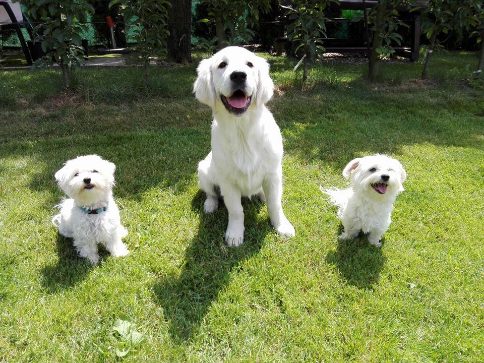 Všechno to začalo vlastně od dětství, kdy jsme od malička vyrůstali se Zlatým retrieverem bez PP a byl to miláček celé rodiny. On nás naučil strašně moc věcí... Byl naprosto úžasný a dokonalý, měl moc rád děti. Od té doby jsem věděla, že příští volba velkého psa bude stejná :). Denyšek se dožil krásných 13 let. Poté si moji rodiče pořídili ještě dva Maltezské psíky bez PP první Betynku a za tři roky Matýska. Jsou to takoví typičtí malí uštěkaní psi. Ale touha po velkém psovi byla prostě silnější, a tak jsme se na konci roku 2015 rozhodli, že by jsme si chtěli pořídit Zlatého retrievera s PP. Začalo to hledání chovatelské stanice. Kamarádka, která taky v té době hledala stěňátko nás přivedla na chovatelskou stanici Dobré srdce Kosmíků. Spojila jsem se s chovatelkou a musím říct, že mi tento člověk od začátku sedl, prostě moje krevní skupina :). A tak jsme v roce 2016 čekali na štěňátko, fenečku. Bohužel se krytí nepovedlo, a tak štěňátka nebyla. Strašně moc jsem to obrečela, ale s chovatelkou z této chovatelské stanice jsme stále v kontaktu, teď je to pěkných pár let a je to člověk, který mi neskutečně pomohl, i když jsme se nikdy neviděly. Vím, že bez ní bych dneska nebyla tam, kde jsem. Děkuju Simi. V roce 2017 jsem našla zase přes kamarádku chovatelskou stanici, ze které máme Armalínku. Dostali jsme se k ní úplně náhodou. Jeli jsme se na ni podívat a bylo to jasné. Od té doby jsme spolu zvládly obrovský kus práce. Naše cesta je nevyzpytatelná a člověk nikdy neví, co bude následovat. Ale ať už to bude cokoliv, tak vím, že si vždycky budeme oporou.